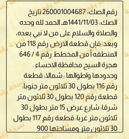 ▪︎ رقم الارض 118