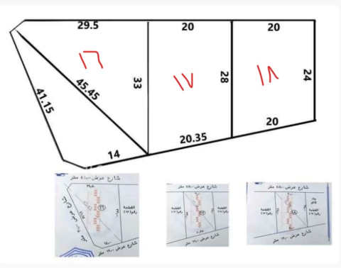 ▪ رقم الارض 17 مساحتها 609م شارع 45 ومن الخلف شارع 12