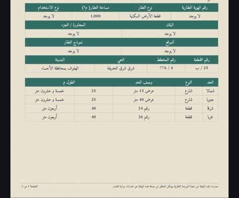 ▪︎ المساحة 1,000 م
