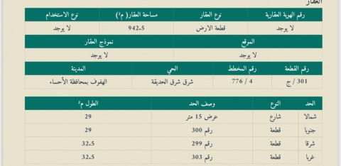 ▪︎ رقم الارض 301