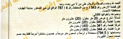 ▪︎ ملاحظات على العقار : يوجد نصف محول كهرباء