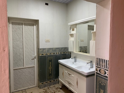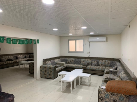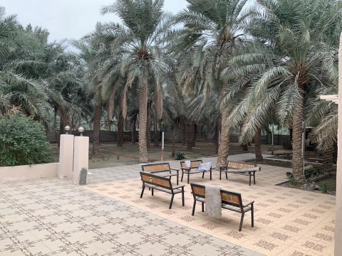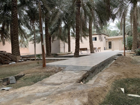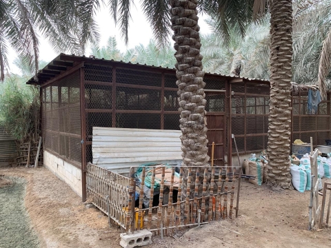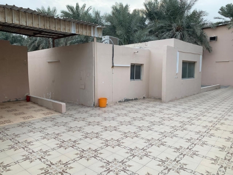 فيها 2 مجالس + 3 غرف + 3 دوارة مياه + ومطبخ + بركة + حوش غنم + غرفة حارس مع دورة مياه