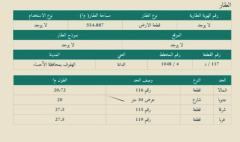 ▪︎ رقم الارض 117