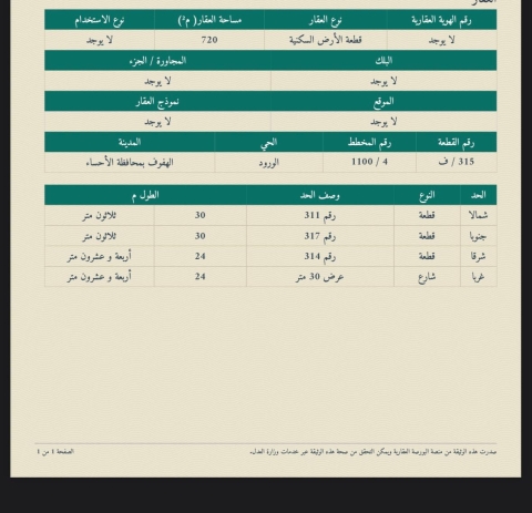 ▪︎ رقم الارض 315