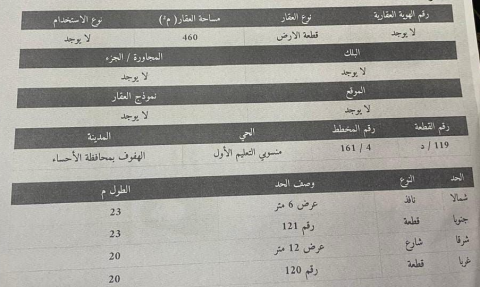 ▪︎ رقم الارض 119 ▪︎ الحرف د ▪︎ المساحة 460 م ▪︎ شارع 12 × 6 ▪︎ السعر 400,000 ريال ▪︎ رخصة فال 1200009258 180 views موقع العقار
