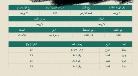 ▪︎ ملاحظات على العقار : يوجد نصف محول كهرباء