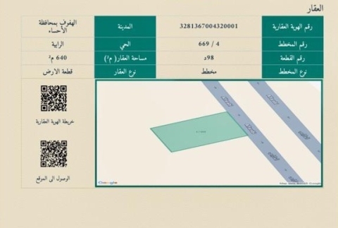 ▪︎ رقم الارض 98