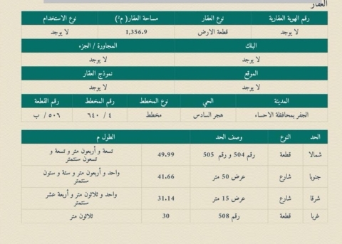 ▪︎ رقم الارض 506 ▪︎ الحرف ب ▪︎ المساحة 1,356 م ▪︎ شارع 50 × 15 ▪︎ السعر 1,150,000 ريال ▪︎ رخصة فال 1200009258 124 views موقع العقار