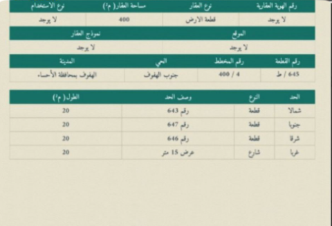 ▪︎ رقم الارض 670 ▪︎ الحرف ط ▪︎ المساحة 400 م ▪︎ شارع 30 جنوبًا ▪︎ السعر 420,000 ريال ▪︎ رخصة فال 1200009258 35 views موقع العقار