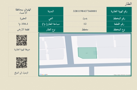 ▪︎ رقم الارض 12 ▪︎ المساحة 350 م ▪︎ شارع 15 × 15 ▪︎ على السوم ▪︎ رخصة فال 1200009258 31 views موقع العقار