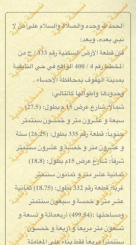 ▪︎ رقم الارض 333 ▪︎ الحرف ح ▪︎ المساحة 499 م ▪︎ شارع 15 × 15 ▪︎ السعر 450,000 ريال ▪︎ رخصة فال 1200009258 21 views موقع العقار