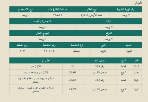 ▪︎ رقم الارض 303 ▪︎ المساحة 766 م ▪︎ شارع 15 × 15 ▪︎ سعر المتر 1,000 ريال ▪︎ السعر 766,000 ريال ▪︎ رخصة فال 1200009258 24 views موقع العقار