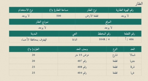 ▪︎ رقم الارض 406
