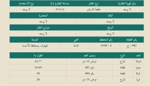 ▪︎ رقم الارض 482