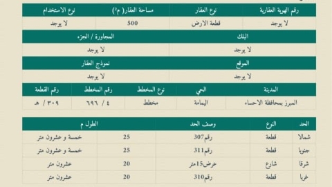 ▪︎ رقم الارض 309