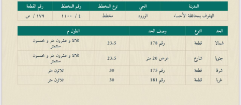 ▪︎ رقم الارض 179 ▪︎ الحرف س ▪︎ المساحة 705 م ▪︎ شارع 20 جنوبًا ▪︎ السعر 420,000 ريال ▪︎ رخصة فال 1200009258 26 views موقع العقار