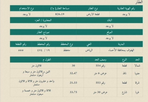 ▪︎ رقم الارض 555 ▪︎ الحرف د ▪︎ المساحة 826 م ▪︎ شارع 30 × 6 ▪︎ السوم 310,000 ريال ▪︎ رخصة فال 1200009258 78 views