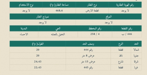 ▪︎ رقم الارض 446