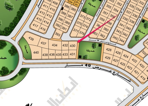 شمالًا: القطعة رقم 432 بطول 32.5م