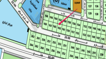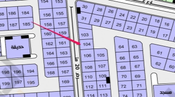 للبيع ارض في الحي السادس بضاحية هجر رقم 104/أ المساحة 780م شارع 20 غربًا السعر 450 الف