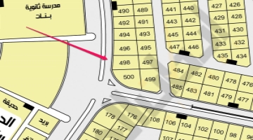 للبيع ارض في الحي الخامس بضاحية هجر رقم 392/د المساحة 869م شارع 15 جنوبًآ السعر 500 الف