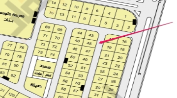 للبيع ارض في الحي الاول بضاحية هجر رقم 45/ج المساحة 625م شارع 15 شرقًا السعر 500 الف