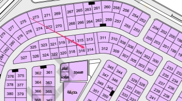 للبيع نصف ارض في الحي الخامس بضاحية هجر رقم 314-2/ب المساحة 390م شارع 15 جنوبًا السعر 240 الف