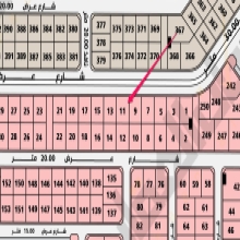 للبيع نصف ارض في حي الورود الشرقي رقم 35/ش المساحة 367م شارع 20 غربًا السعر 220 الف